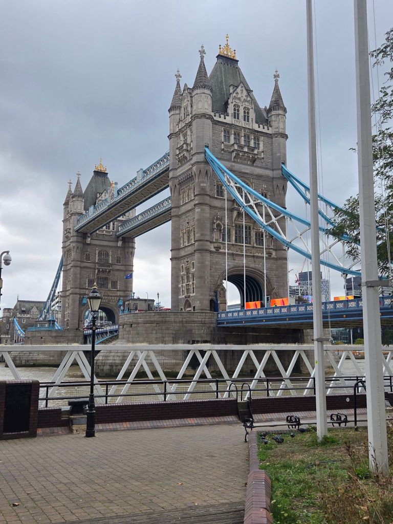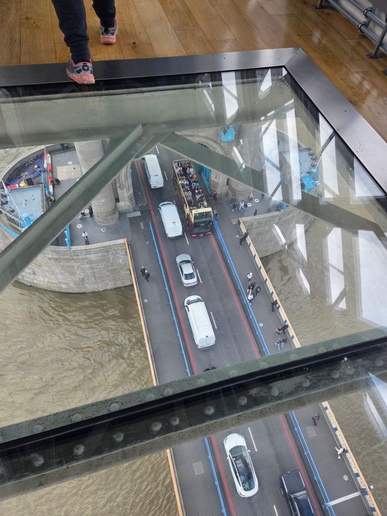 From the museum we moved on to Tower Bridge. We climbed over 200 stairs (they very kindly gave us signs with how many stairs there were) to get to the top walkways.