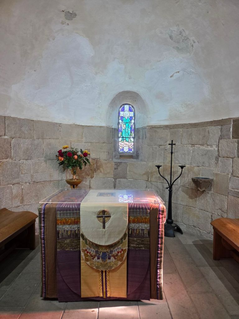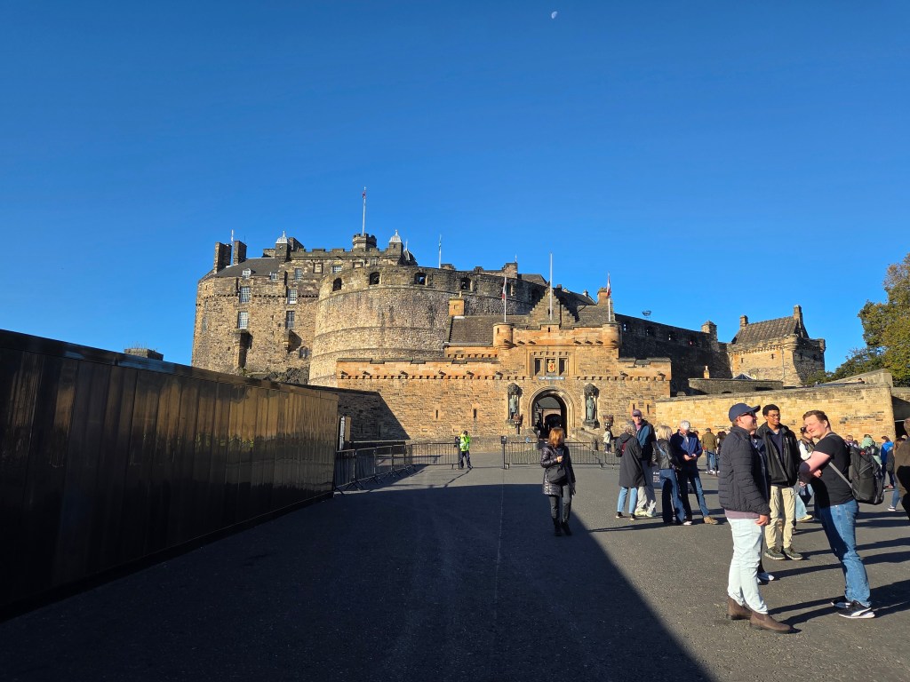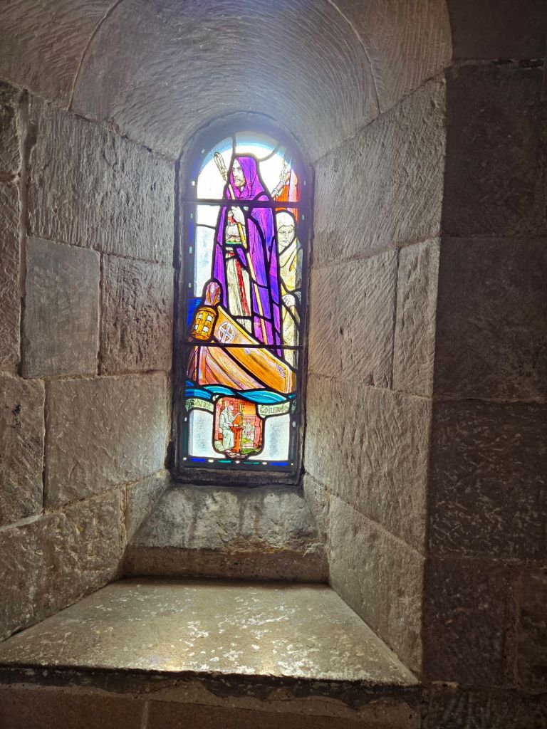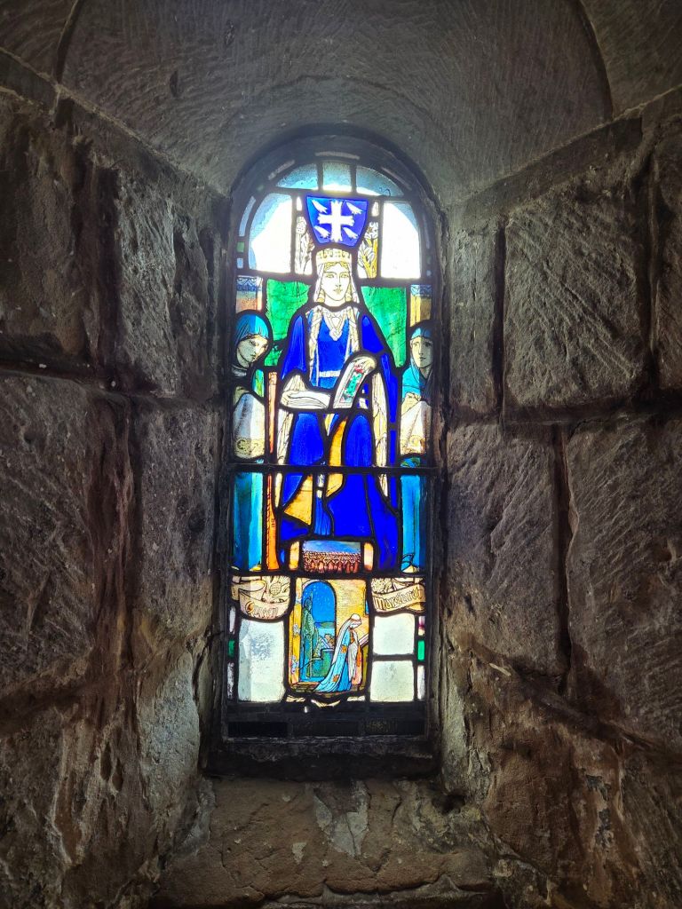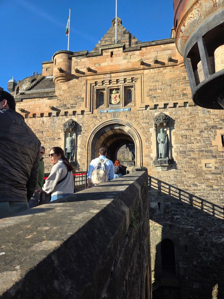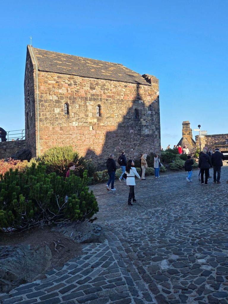 Today we were off to visit Edinburgh Castle. A place that fascinates me. Set on an ancient volcano above the city of Edinburgh, the history of this place is long and varied. Our guide informed us that it is the most invaded castle in all of Europe, at a total of 26 times. Usually by other Scots. It is amazing. It is not just one castle but a collection of buildings. Not all built at the same time. For instance, this one was built about 900 years ago (it is actually the oldest building in Edinburgh, a chapel dedicated to St Margaret):