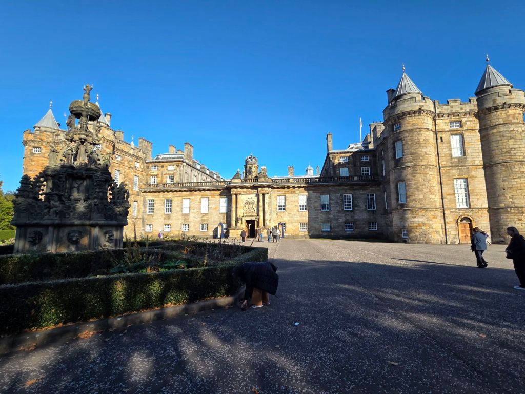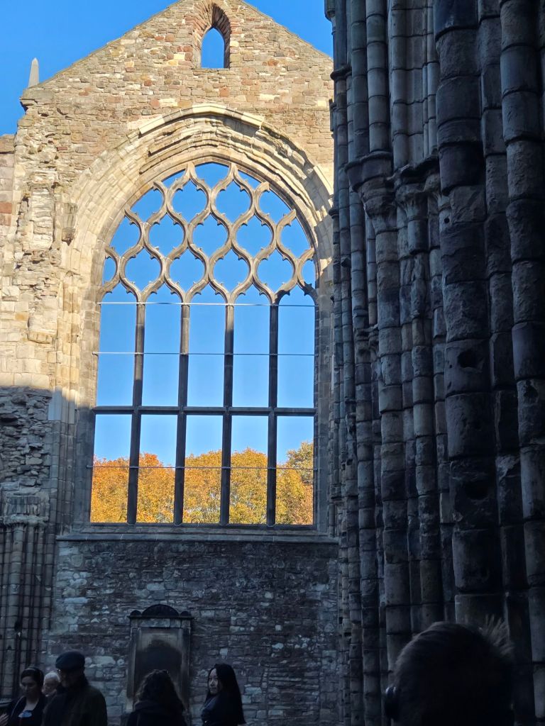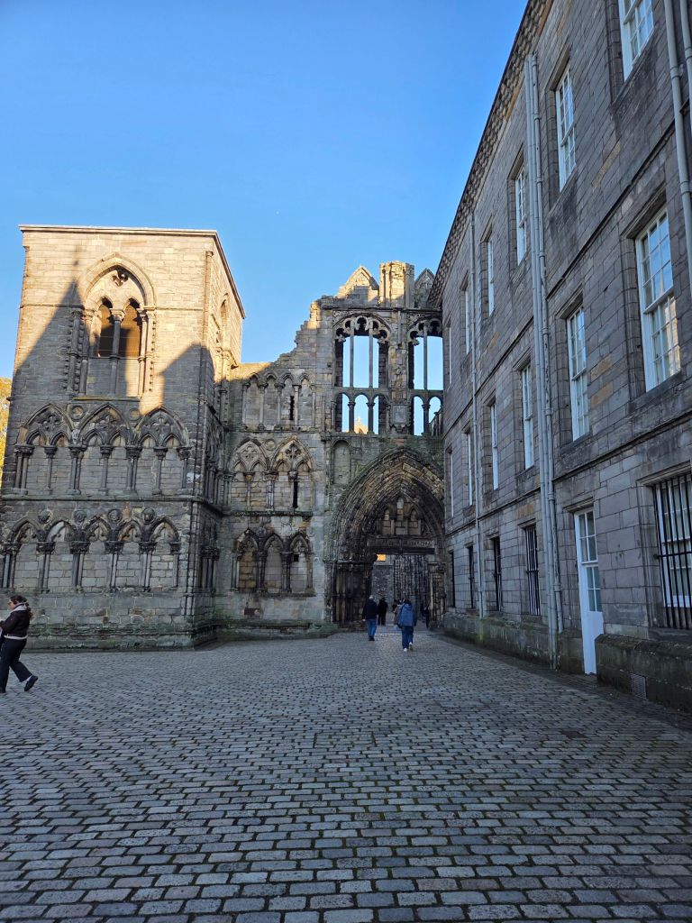 And ended up at Holyroodhouse Palace. This Palace is where the Royal Family stay when they are visiting Edinburgh. It is also where Mary, Queen of Scots live, amongst others. It was a very interesting place to explore. It also has an old abbey which is enchanting.